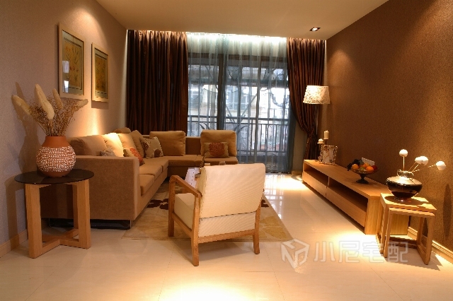 客厅的装修以简洁为特点,一套米色沙发、几件普通的艺术品,让这个客厅简洁而不失大气风范。