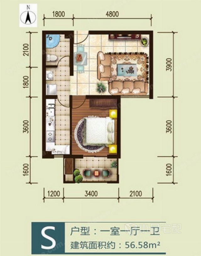 尽管这间一室公寓在表面上与其他无异,但考虑到用浅色的墙壁来扩大视觉空间。家装家具一体价:8.8万元