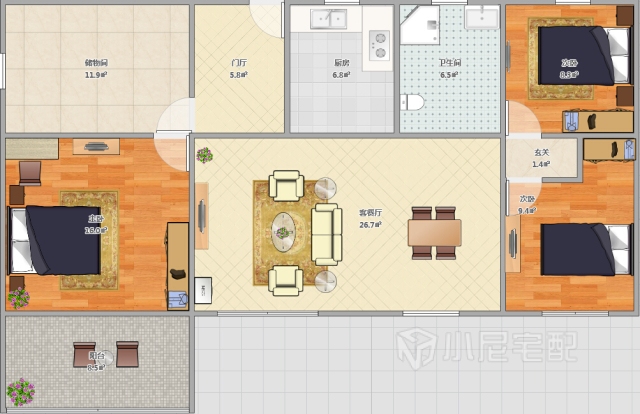 这是一个四室两厅的户型,业主是一对从法国回来的海归夫妇,装修采用简约欧式风格,带着一点奢华的味道,大气而浪漫。家装家具一体价:24万。