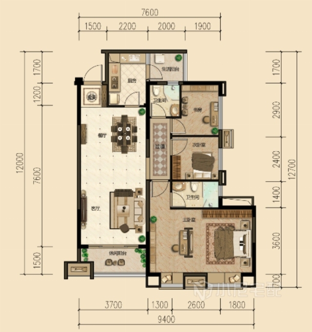 榻榻米设计,摆一张茶水桌,方便小俩口谈心、休憩。朋友来了也多了一个招待区域。
