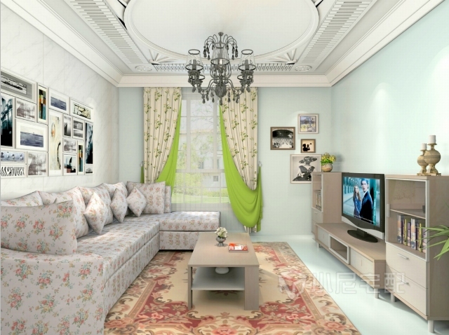 这个风格舒服自然又富有浪漫的气息在里面,客厅的墙面色彩让整个空间显得十分静谧,墙上的装饰画与整个空间相互映