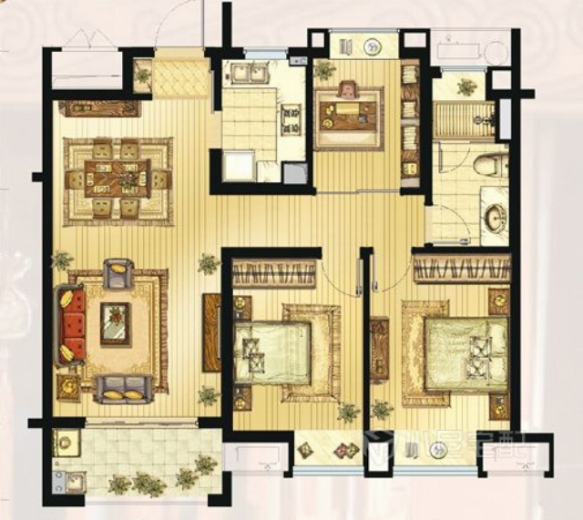 原木色材质的地板看上去非常有质感,明快但却很稳重,很适合年轻业主。
