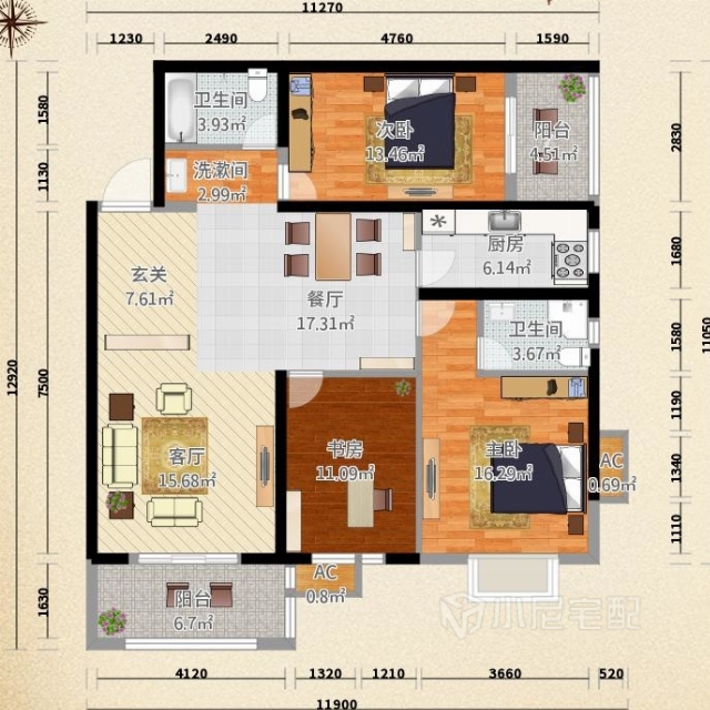 小尼宅配套装采用的是挪威森林系列的,这个表现出很沉稳、宁静、文化、优雅高贵的气息。
