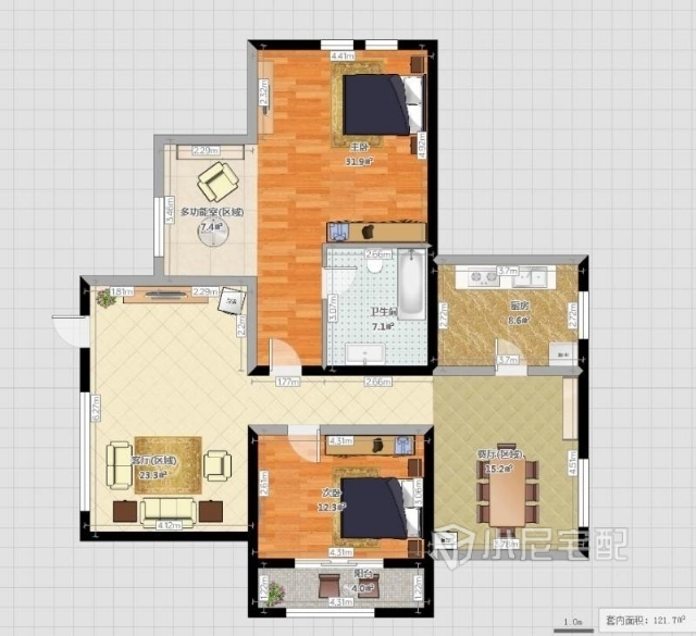 仿实木纹理,在青黛色的搭配下有种自然清新的感觉。