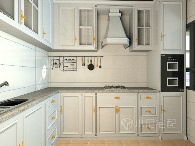 厨房的另一个角度,配上一个高柜消毒柜。