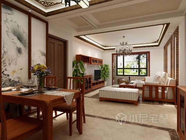 简单的中式元素,与沙发布艺的结合,摒弃生硬死板,更显亲切自然