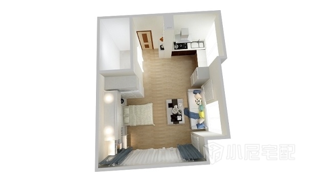 单身公寓:丰富的设计元素,注重人与自然、社会、环境的结合,为居住者带来绿色、环保安全的生活空间。合理利用空间死角位置,不浪费空间的同时,完美满足储物难题以及聚餐人数多的需求。删繁取简,摒弃复杂繁琐的卧室格局,用清新淡雅的颜色装饰空间,纯天然的材质运用,让卧室生活放心起来。