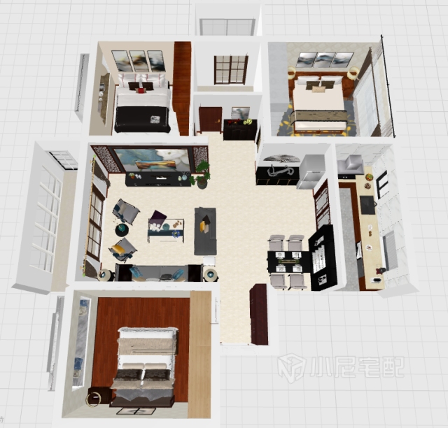 这是次卧尽量还是让他在使用红木色的基础上亮一些。