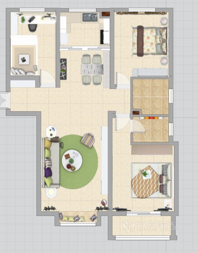 客厅采用了绿色的地毯,让空间顿时明亮起来,小小的飘窗正好把空间充分利用了起来。