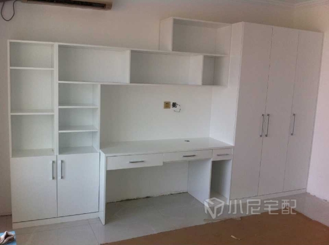 书房里书柜+衣柜的连体功能,既可以做公共书房,又能做客房。