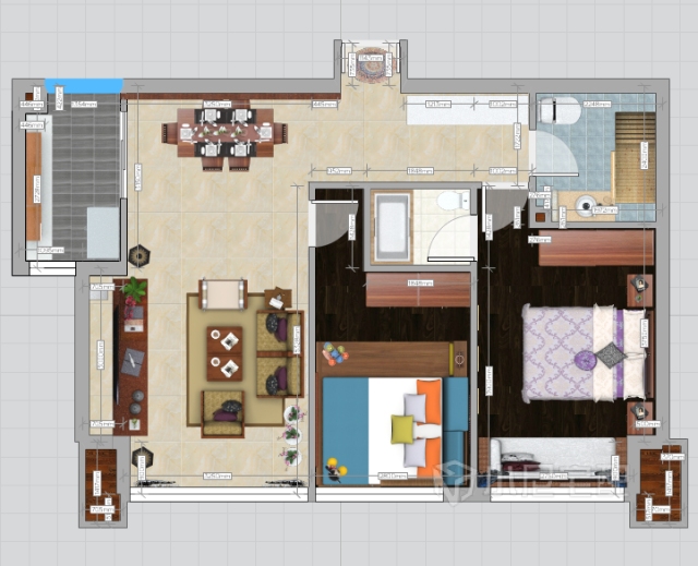 将中国元素结合时尚意象来点缀空间主题,让大家能欣赏到美好的传统文化。整体设计上,以大量的木造、深色家俬展现沉稳内敛,局部以镂空的揭开意象,以石材天然的纹理释出东方秀丽味道。家居家装一体价:14.4万。