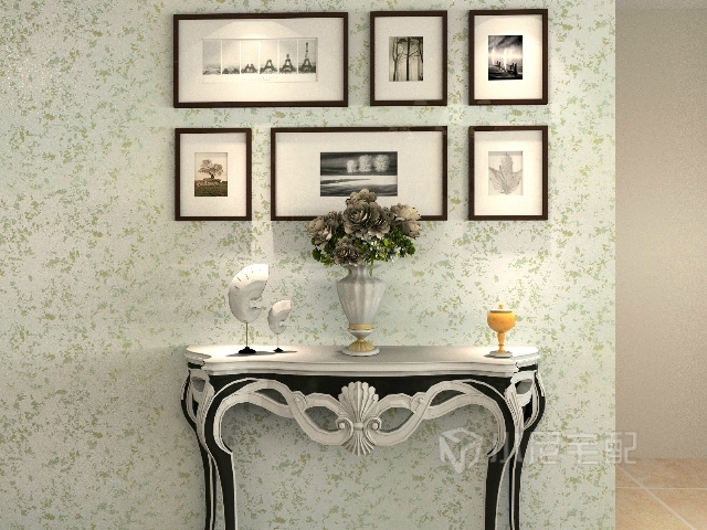 彩粒漆背景墙,前面放一个简单的欧式小桌放走廊,不显得空荡荡的。