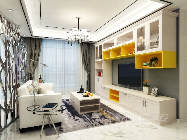定制电视柜合理利用空间,造型简约,色彩鲜艳。