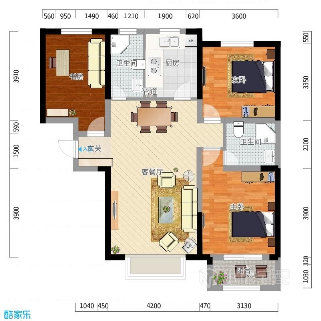 餐厅处加了一块隔板,储物功能装饰性都得到了提高