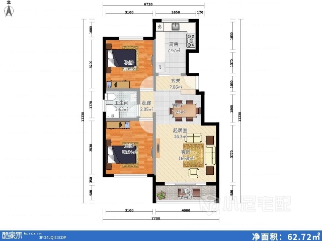 卧室家具采用原木色为主色,白色为套色,有些混搭的艺术气息