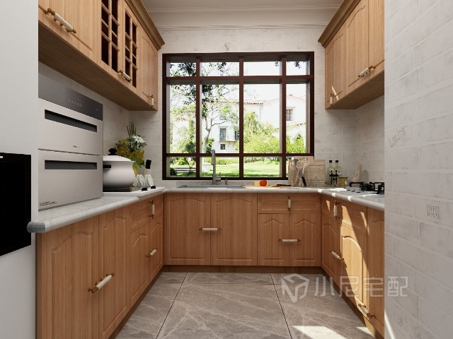 厨房的橱柜采用吸塑门板做出口线的造型,高端大气
