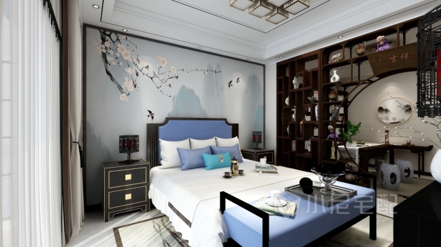 新中式风格,大气沉稳。运用充分的色彩调节整个屋子的亮点
