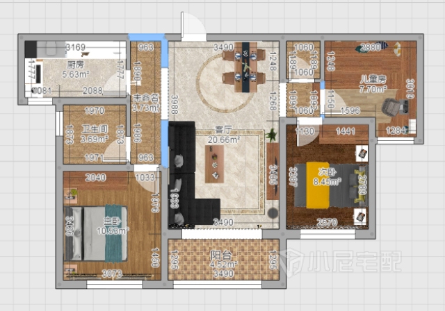 整体以简约大线条,温婉小线条为主线,色彩选用亮黄色为跳跃色,为家增添了动感和活动。