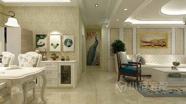 玄关做了一个孔雀图案 孔雀代表着吉祥