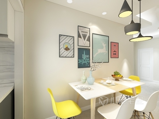 色彩以灰白为主还搭配了些许的柠檬黄,让整个空间充满了活力。