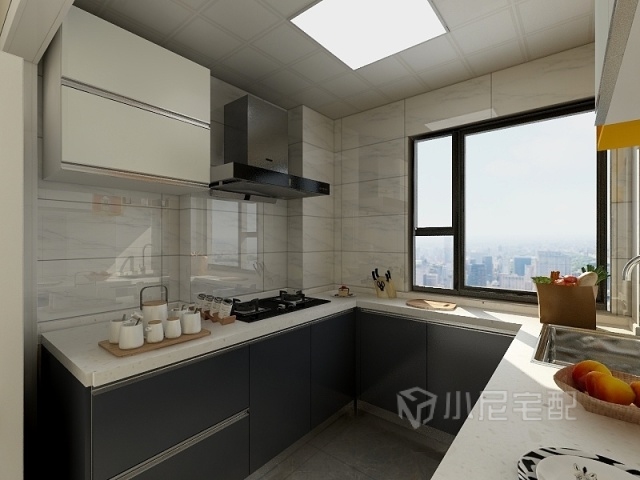 厨房墙面采用白色理石纹的瓷砖,给人整体感觉干净大方。