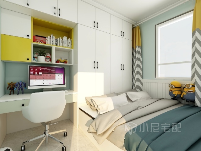 柜体与书柜的融合,床帘与床的融合,是多么温馨