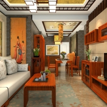 中国风并非完全意义上的复古明清,而是通过中式风格的特征,表达对清雅含蓄、端庄丰华的东方式精神境界的追求。家装家具一体价:25万。