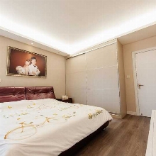 是给一个老客户的小夫妻朋友做的。现代简约的风格中混搭了一些其他元素,整体设计跟着结构走向做了些装饰点缀,简洁明了。家装家具一体价:25万。